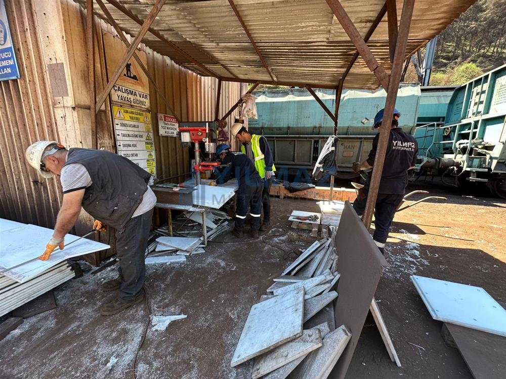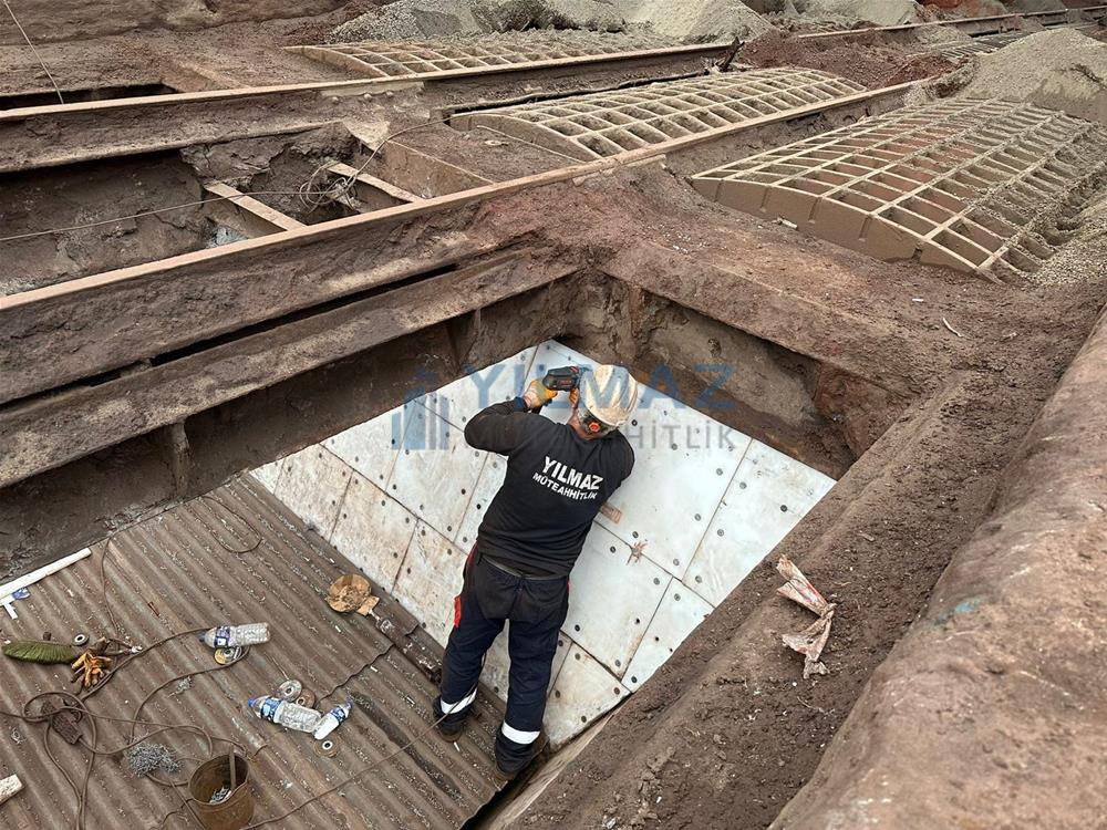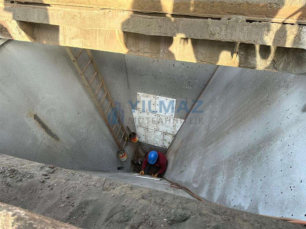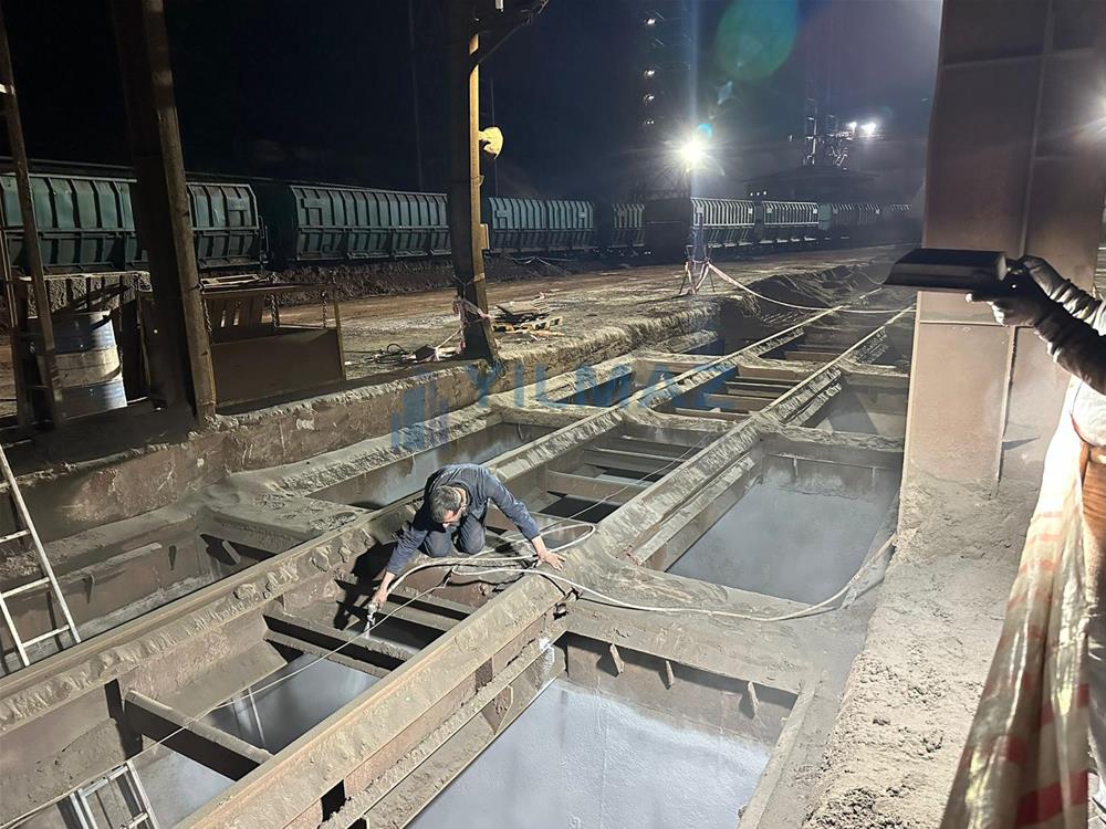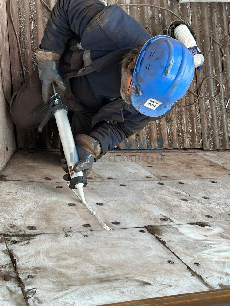 bunkerlerdeki mevcut kaplamaların demontaj işlemi, bunkerlerin kumlama ve astar işlemi, Almanya Simona firmasından Yılmaz Müteahhitlik firmasının temin etmiş olduğu PE1000 levhaların 500x500 ölçülerine göre kesilerek 8 yerinden paslanmaz havşa başlı civata ve fiber somun ile montajı ve sosis slikon uygulaması ile derz dolgu işlemlerini konu edinmekte olup, tamamı firmamız kapsamında yapılmıştır.